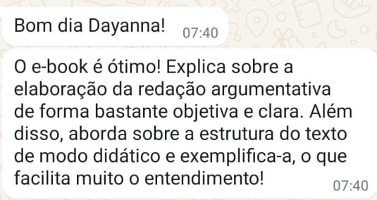 Sim! Nesse E-book vou te ensinar o passo a passo para construir a redação, desde a definição da tese e dos argumentos até a elaboração do texto e dos parágrafos que compõem cada parte. Tudo isso de forma clara, a partir de exemplos, para que você consiga visualizar na prática como deve ser a elaboração.